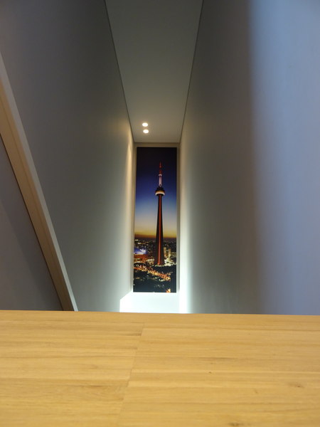 In this beautiful new home in Edegem, our acoustic expert could observe a very large reverberation problem in the living room and the hallway. The entire residence is built around a little patio, resulting in a couple of very large glass areas to be in close proximity to each other. In contemporary architecture, glass is often used, due to its transparency allowing a lot of natural light to enter the room. However, using glass also comes with an adverse effect to a room’s acoustics. The hard, smooth surface accelerates the sound reflections, and isn’t able to reduce the sound level that is experienced. Furthermore, the elegant design of this residence, containing few frills, doesn’t offer much absorption of the superfluous sound waves as well. Our soft absorbing materials were much needed.
